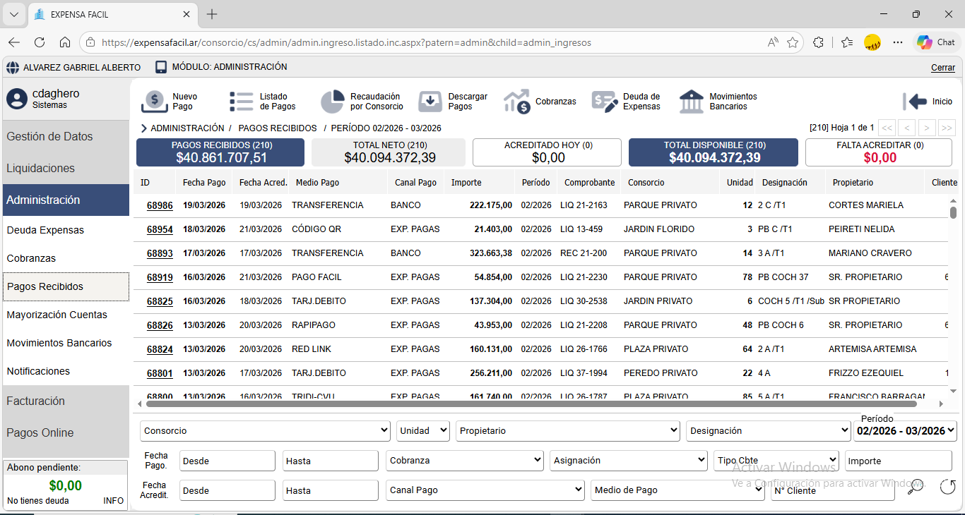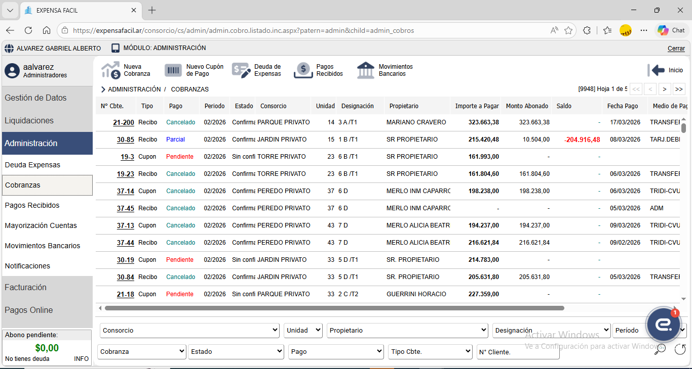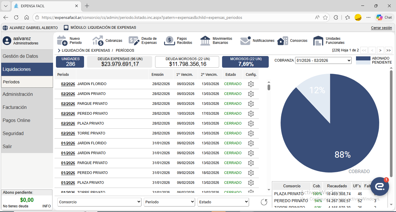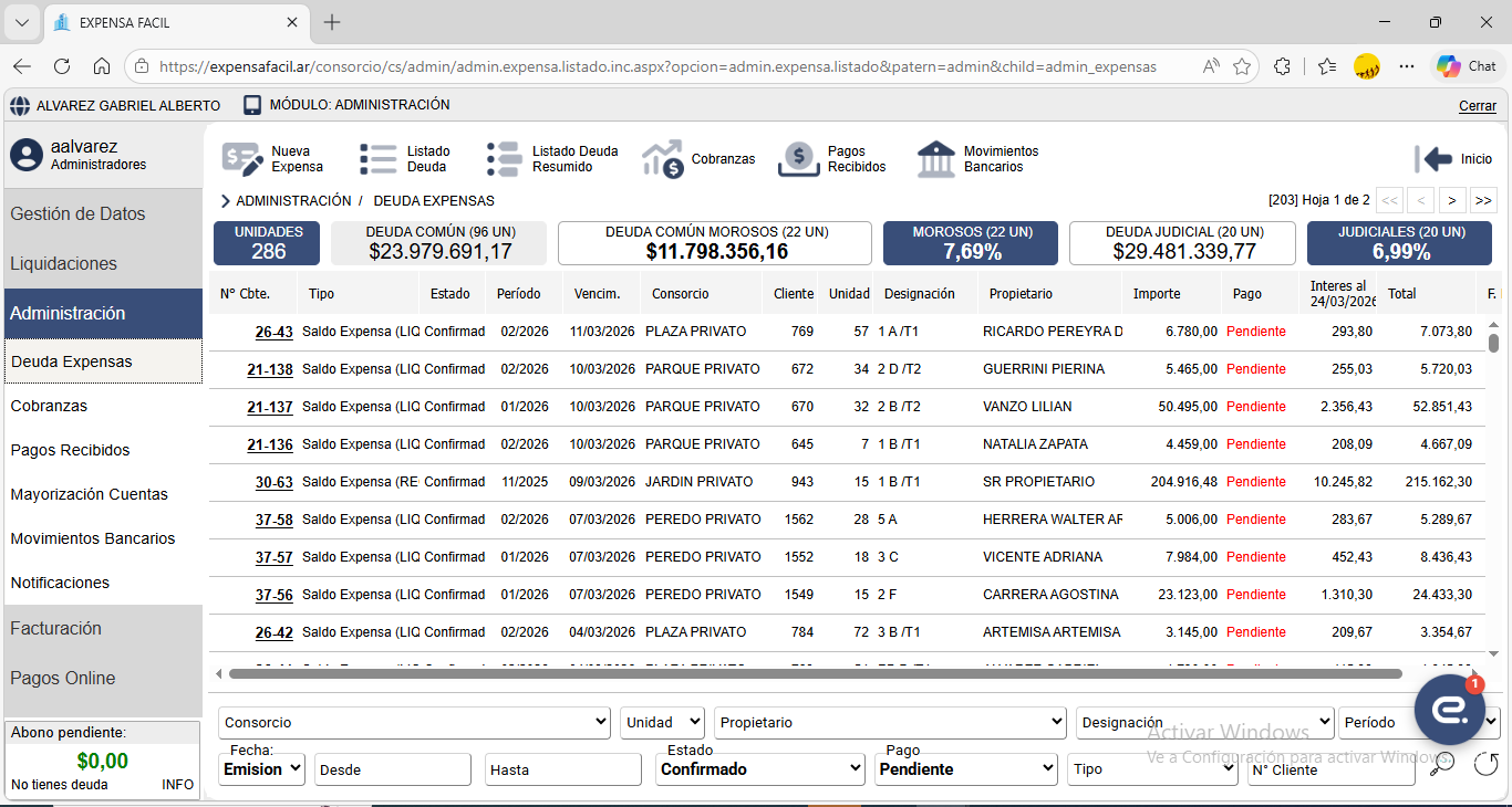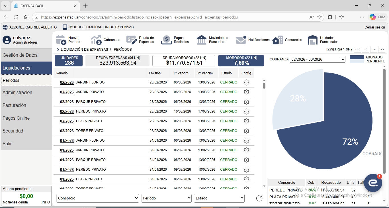 Expensa Fácil es un completo sistema de gestión que además de administrar los gastos del consorcio y emitir liquidaciones de expensas, permite generar informes de deuda, gestión de deudores morosos, mayorización de gastos, cobranzas personalizadas, factura electrónica, Cta. Cte. de Proveedores y mucho mas.