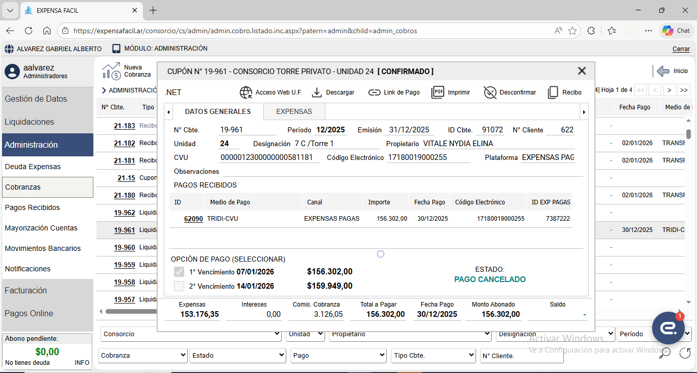 En 2019 evolucionamos a expensascba.com.ar, sitio web de administración de consorcios desarrollado en ASP.NET. Se integra la plataforma de Cobranza SIRO.
